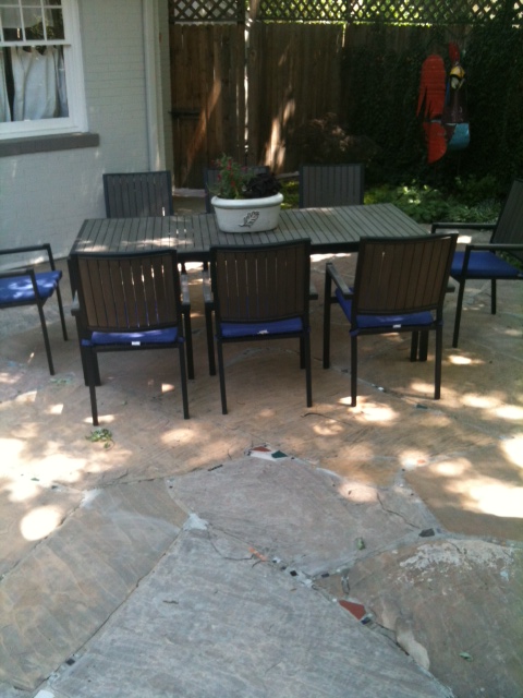 Thoughts of these folks float across my mind, as this long weekend has us doing things around the house. Some house projects are actually meditative for me. Like spackling the patio and laying broken pieces of pottery and tile between the pavers to add color and whimsy to our back yard. All it takes it a little Quickrete and a lot of patience.