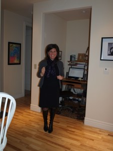 But the crowning glory of my creative repurpose is a black dress I got on the Back Rack at Loehmanns for $10. I looked terrible in it – sleeveless and straight is not a good look for me. But I couldn’t pass it up. So, it hung in my closet til last week, when I saw it through new eyes. I cut off the bows and covered up the leftover threads with a sweater. My favorite scarf, a pair of fun tights and black boots gave it a fresh and contemporary look. I wore it twice this week and am taking it to work on Tuesday. It’s my new uniform.